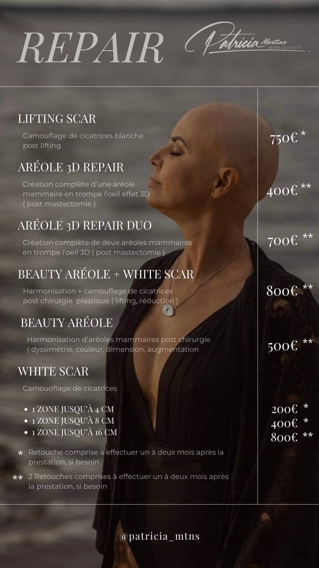 Suivi et retouche : Une séance de retouche gratuite est prévue après 4 à 8 semaines pour optimiser le résultat.