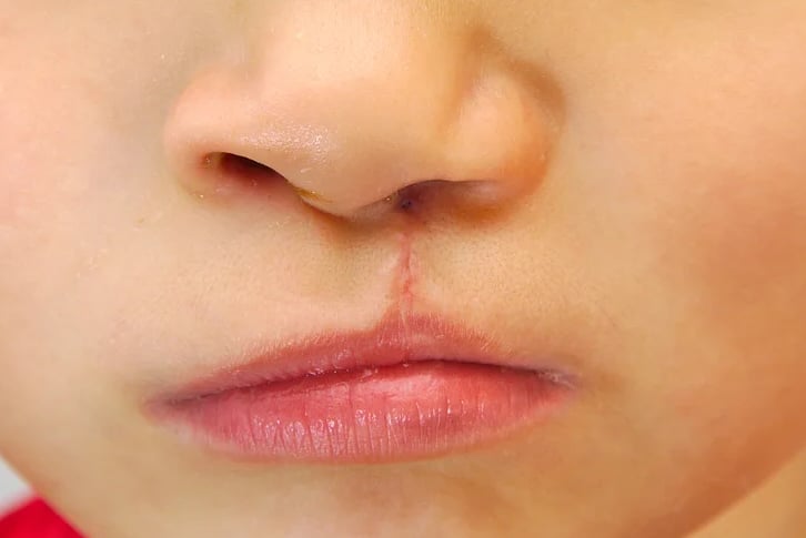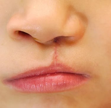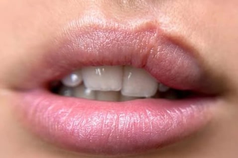 Les personnes ayant une fente labiale " Bec-de-lièvre " : Étant opérée, mais avec une asymétrie des lèvres ou une cicatrice apparente.